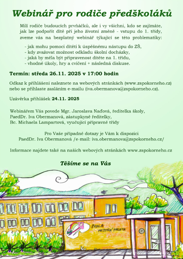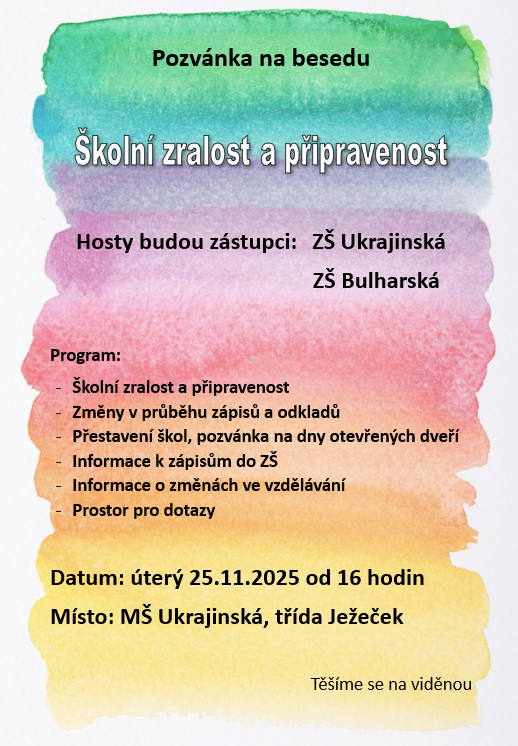 Pozvánka do MŠ na besedu se zástupci ZŠ Ukrajinská a ZŠ Bulharská