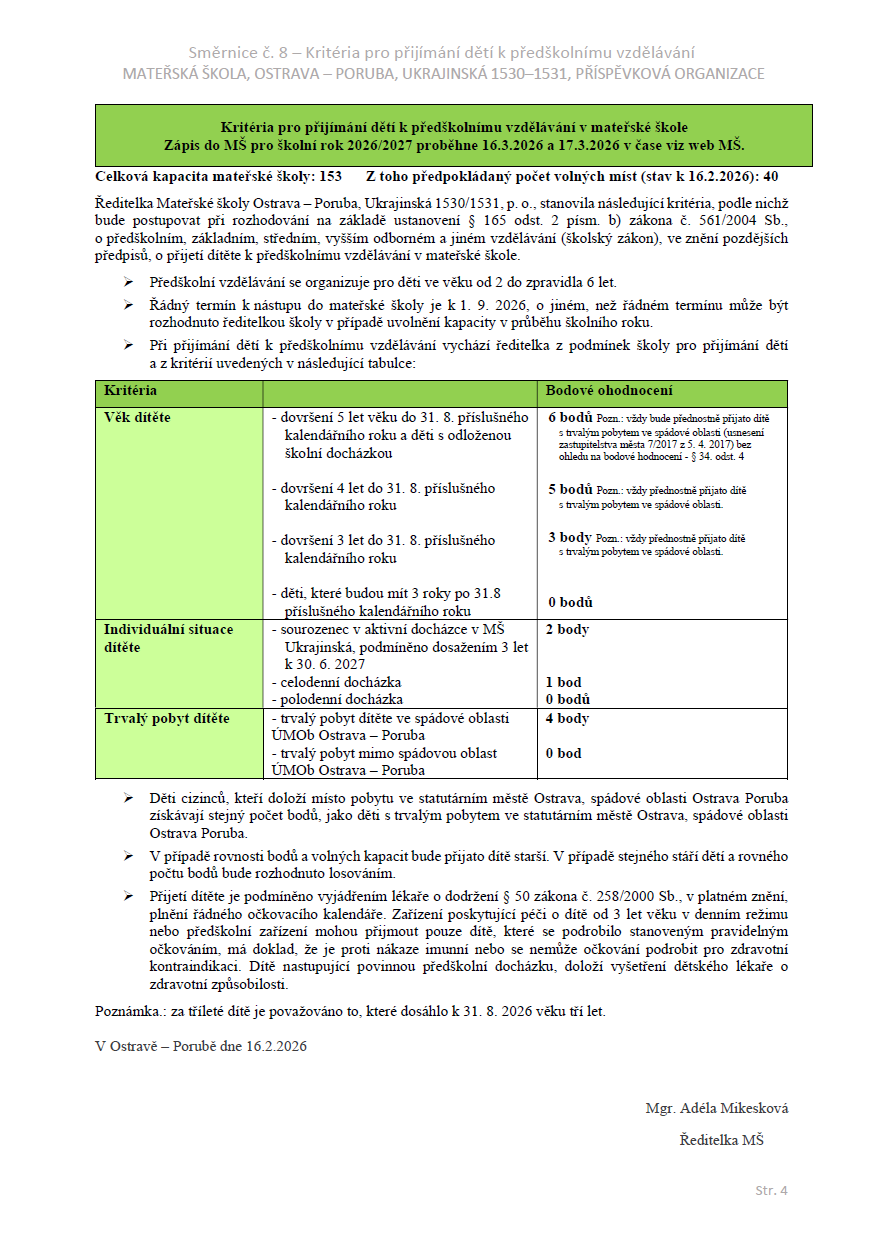 Kritéria přijetí do MŠ jsou k nahlédnutí ZDE.