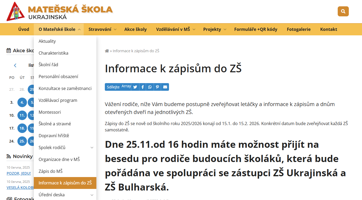 Rychlejší cestu najdete v záložce O Mateřské škole, podzáložka Informace k zápisům do ZŠ viz obrázek níže.